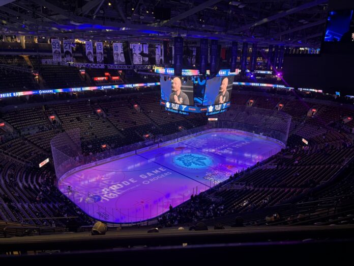 The team is missing their star forward, Auston Matthews, as well as first liner and solid goal-scorer Matthew Knies, so things aren’t looking great from the start. Someone next to me mentions the loss of Brandon Carlo, who, alongside fellow defenseman Christopher Tanev, was recently put on injured reserve. There is no doubt that injury has run rampant this season for the Leafs, with these only being a few of the many players missing from the game.