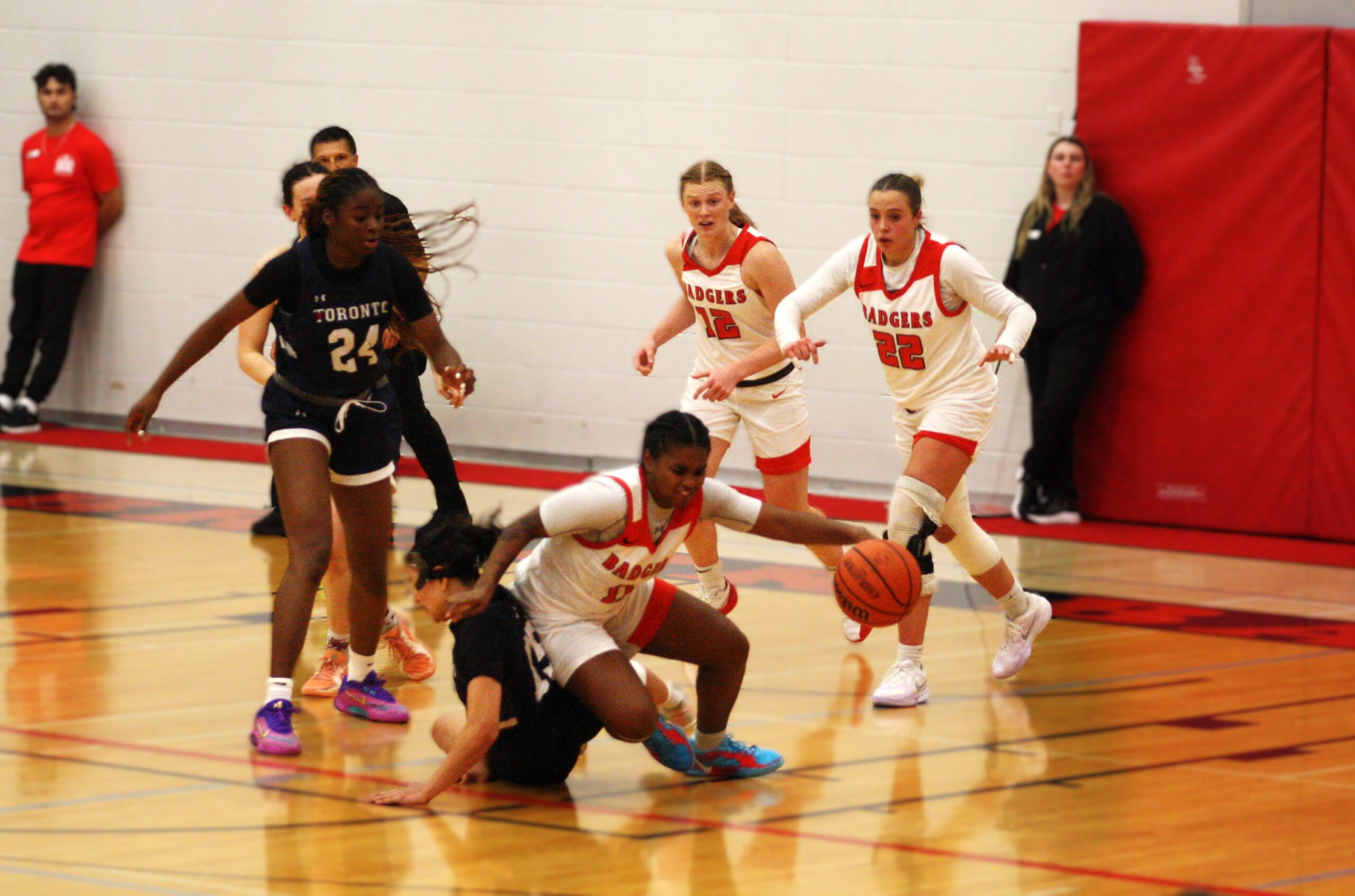 Despite Weinert’s individual dominance, the team was putting in a shift on the defensive end. Dheensaw implemented a full-court press, pushing the Badgers’ defence up the court, allowing them to pressure the Varsity Blue’s ball handlers. This worked to perfection as players like Jamie Addy and Shailah Adams thrive in full-court traps with their pesky hands and ability to read the floor. Adams would finish the game with three steals of her own as the Badgers team would rack up an impressive 16 steals as a team. If there was anything to critique for the Badgers’ defence, it would be their lack of awareness when fouling. There were some occasions late in the shot clock when players would commit useless fouls, leading to a Varsity Blues possession or free throw.